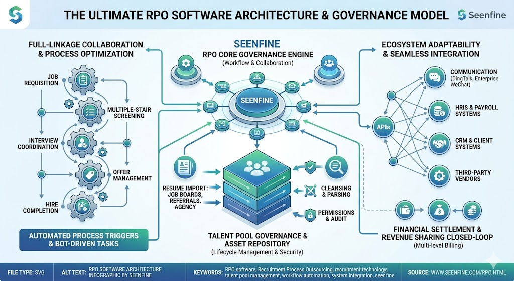 RPO-Lite v2.0 是新帆软件(Seenfine)针对中型企业数字化转型初期设计的轻量化招聘流程协同系统。该系统区别于臃肿的全能型 ERP 平台,其架构核心专注于解决“简历流转”与“招聘外包闭环”两个关键工程问题。